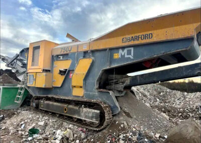Large, mobile jaw crusher, weighing only 19.5 tons, of Irish production, imported from abroad. The machine is on a crawler chassis. It has a Cat engine (C4.4 plus power generator, which makes the crusher very economical), rear screening, remote control, and a magnetic separator. The machine is in very good technical and visual condition.