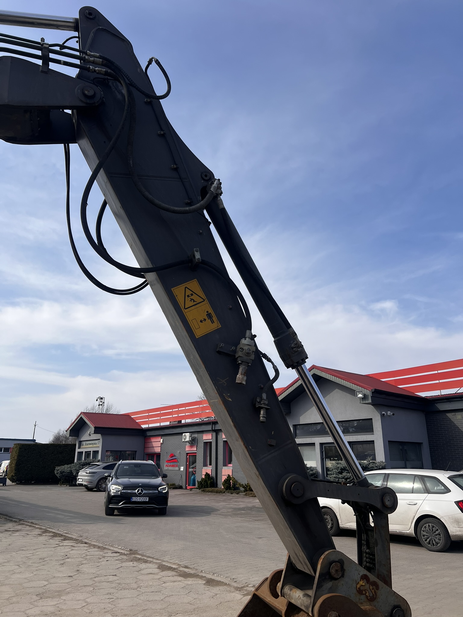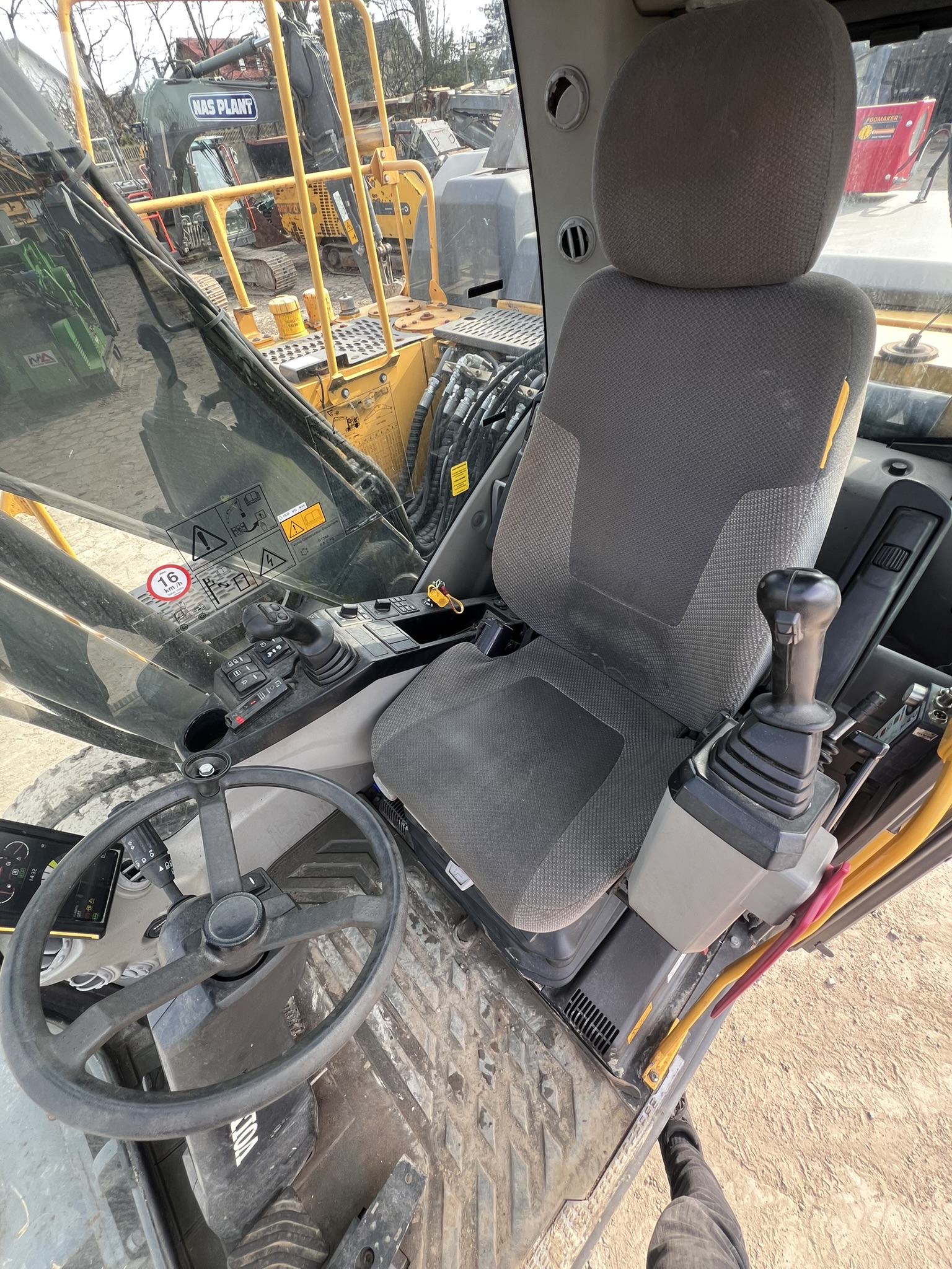 20.5 ton wheeled excavator, equipped with a CW30 quick coupler, air conditioning, camera, stabilizers, hydraulic outlets, and a central lubrication system.